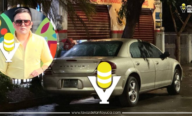 Debido al fuerte impacto, el cofre del carro se abolló y el motociclista quedó arriba del capacete.