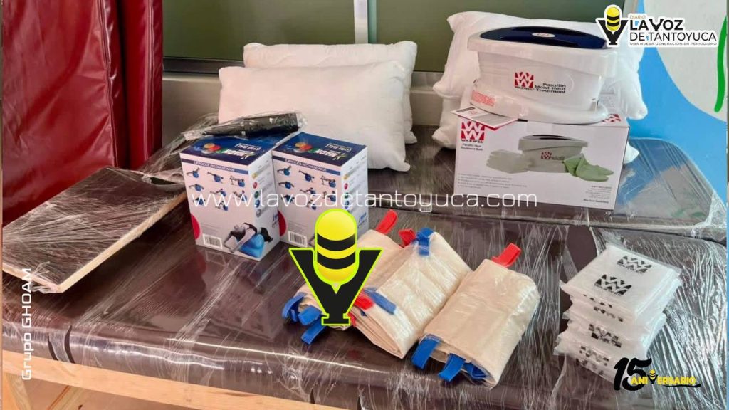 Entre el equipo recibido destacan compresas de calor húmedo estándar y lumbar, un set de pelotas Bobath, almohadas ortopédicas, un balancín terapéutico de madera, colchones terapéuticos, mesas de tratamiento, un espejo de postura y un parafinero terapéutico, herramientas fundamentales para fortalecer los procesos de rehabilitación física.