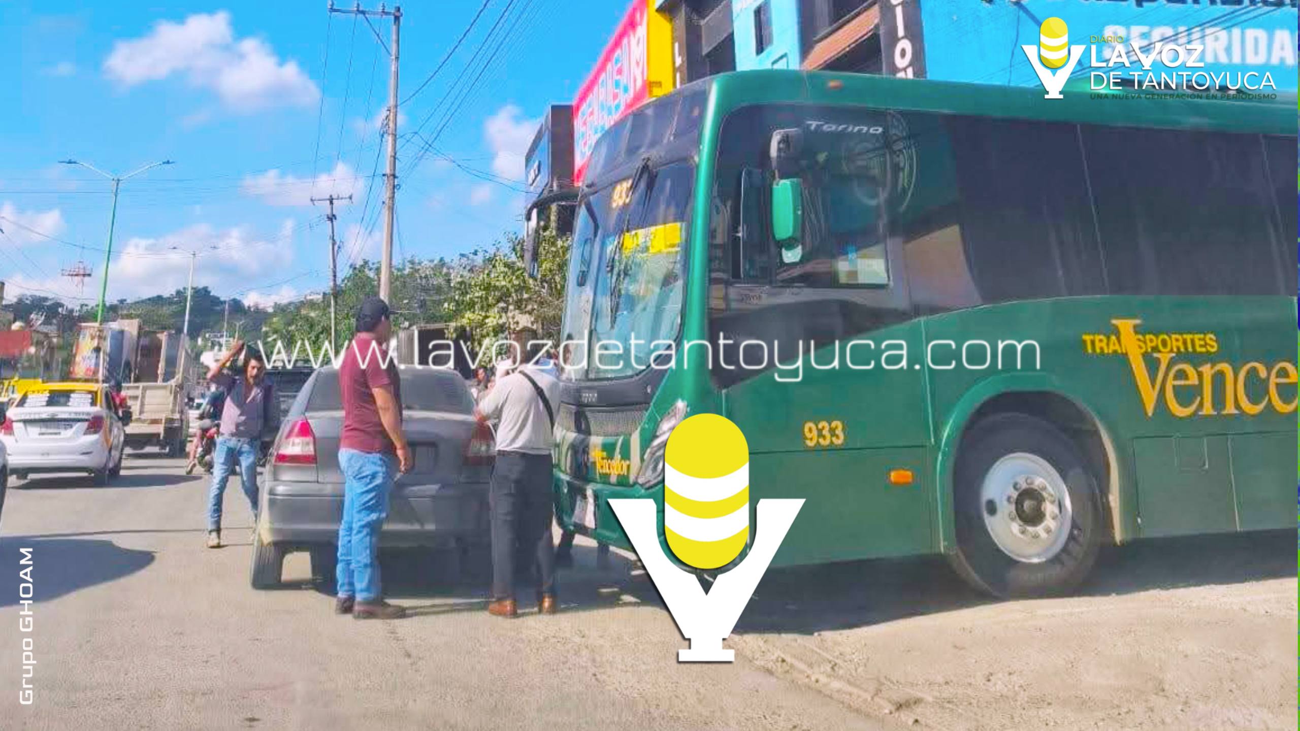 Un autobús impactó un automóvil particular estacionado en la terminal de autobuses El Vencedor, en el municipio de Huejutla, sin dejar heridos graves.