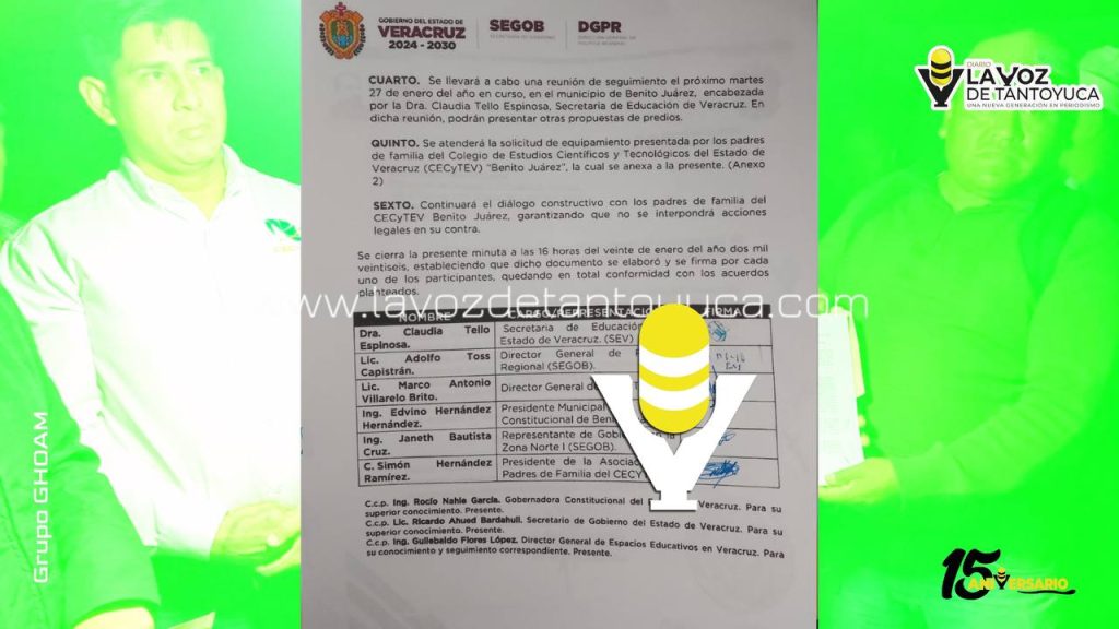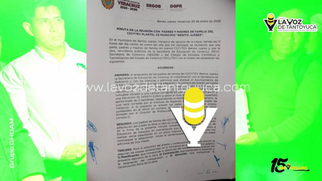 Después de dos días de diálogo y negociaciones, la Asociación de Padres de Familia del CECYTEV Plantel 03 Benito Juárez alcanzó un acuerdo con el Gobierno del Estado para hacer realidad la construcción de un nuevo plantel educativo.
