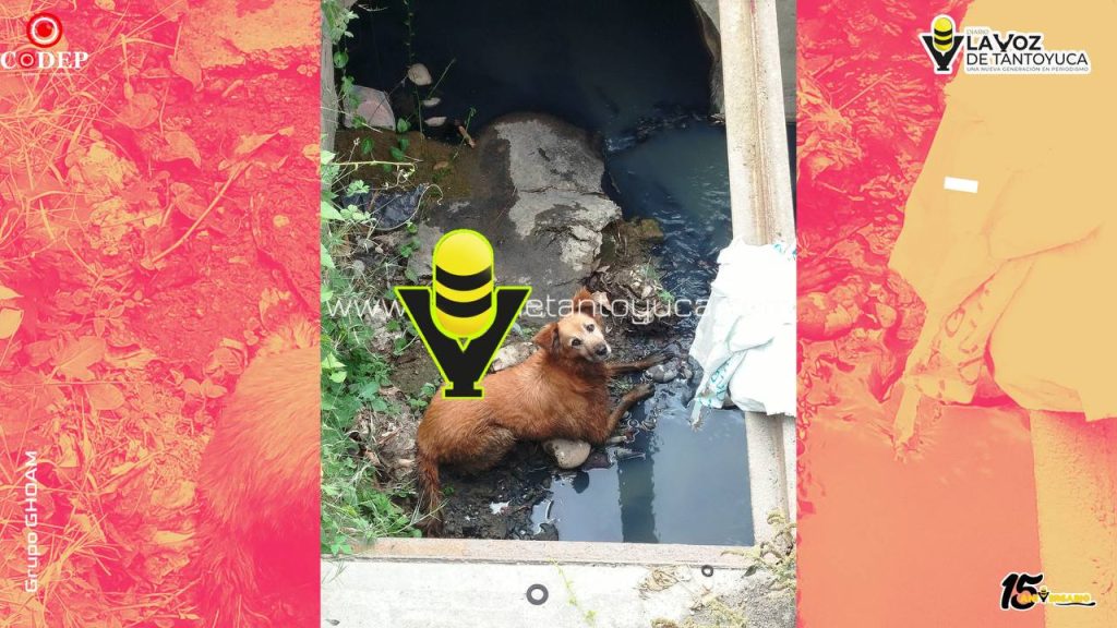 Personal del Centro de Salud Animal Municipal rescata a perrito atrapado en canal en Tantoyuca