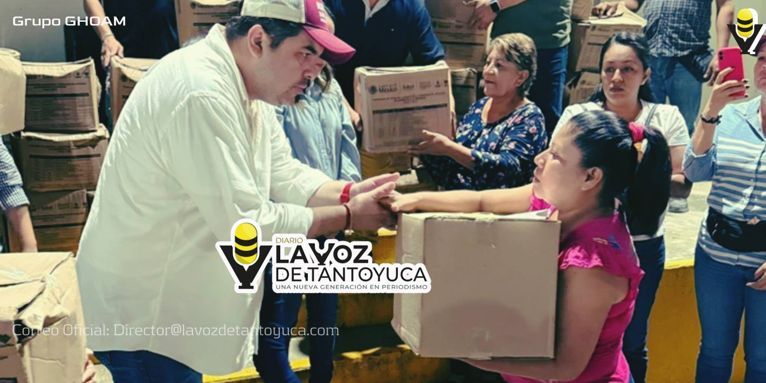 En respuesta a las afectaciones provocadas por las recientes lluvias, el alcalde electo Roberto San Román Solana encabezó la entrega de más de 100 despensas y apoyos económicos a locatarios del Mercado Municipal de Tantoyuca, quienes sufrieron pérdidas totales en sus puestos de semillas, frutas, verduras y otros productos.