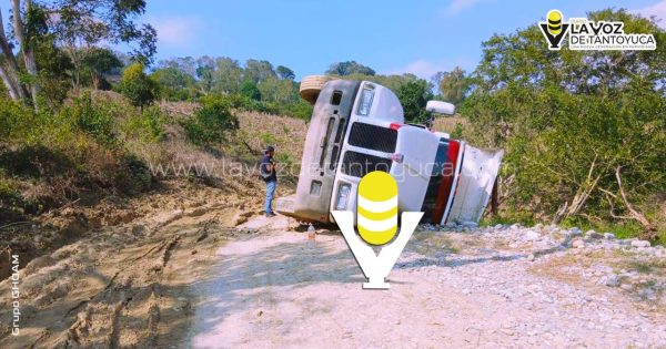 Vuelca camión de volteo en Chicontepec; operador resultó ileso