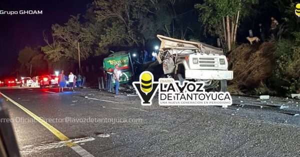 Autobús choca contra camión materialista en la Valles – Tamazunchale; una fallecida y siete lesionados