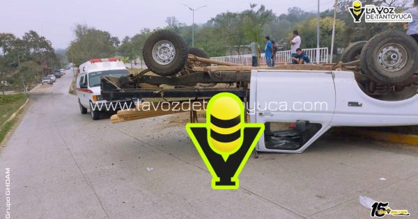 Vuelca camioneta en la Alazán – Canoas, en Tempoal