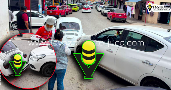 Tantoyuca, Veracruz | 08 de Febrero del 2026 | Grupo GHOAM n choque entre dos autos compactos se registró sobre la calle Heroico Colegio Militar, en el primer cuadro de la ciudad, dejando como saldo sólo daños materiales mínimos. El percance involucró a un vehículo Volkswagen, Sedán, de color blanco y un vehículo Nissan, Versa, ... -