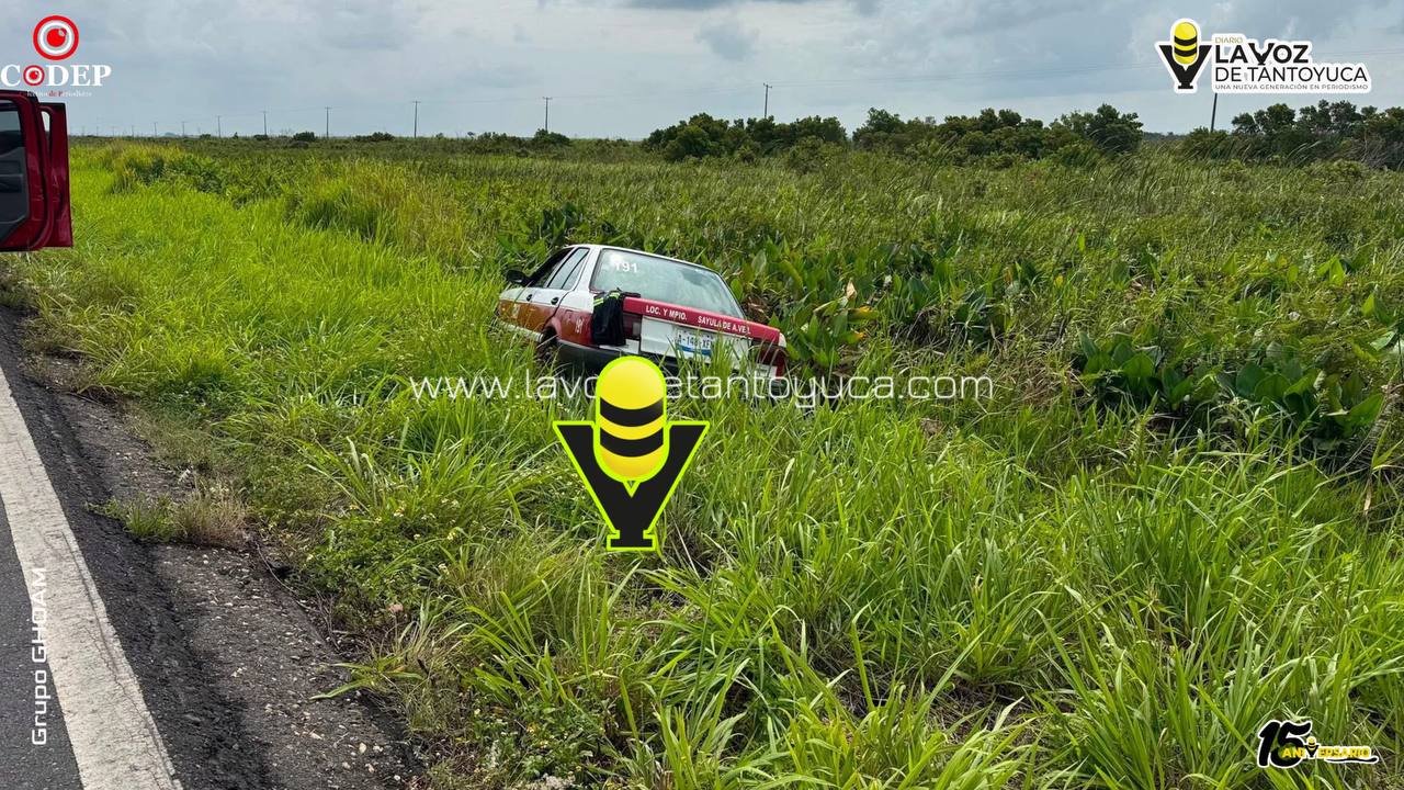 Un taxi del municipio de Sayula de Alemán, marcado con el número económico 191, se salió de la carretera Coatzacoalcos – Minatitlán, conocida como Las Matas, luego de que su conductor perdiera el control de la unidad, la mañana de este lunes 20 de abril.