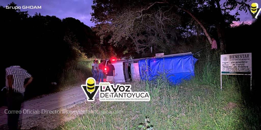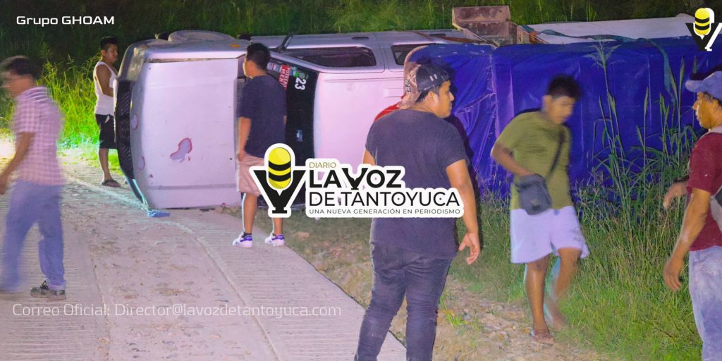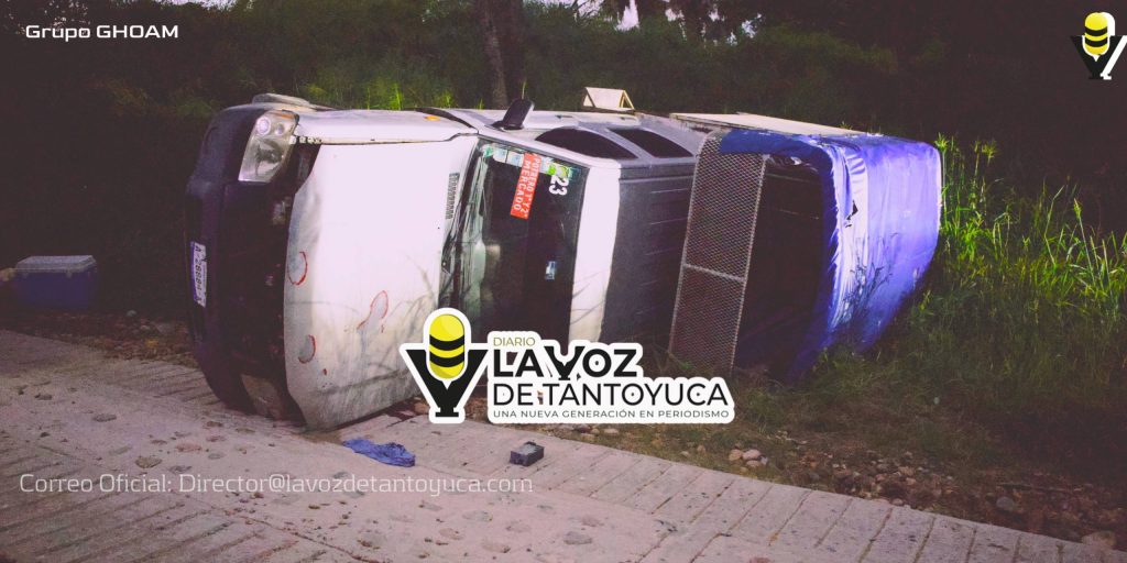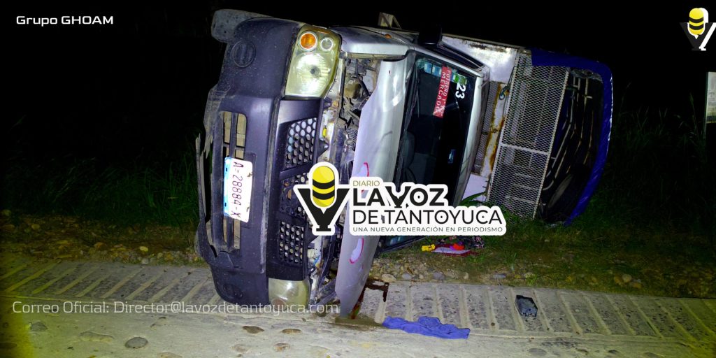 Vuelca camioneta pasajera en la Congregación Xilozuchitl
