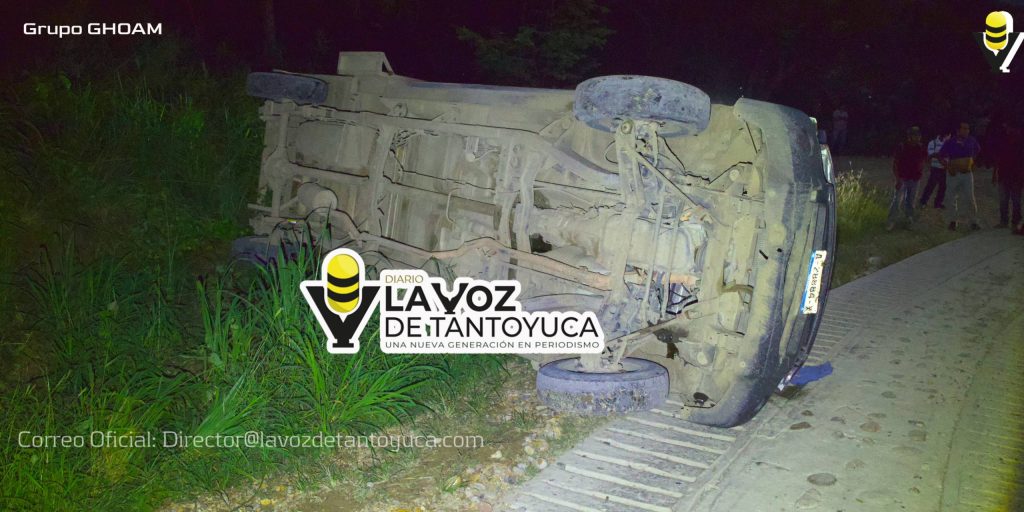 El accidente se registró cuando el conductor de la camioneta perdió el control en una pendiente, descendió la unidad en reversa y volcó de manera aparatosa.